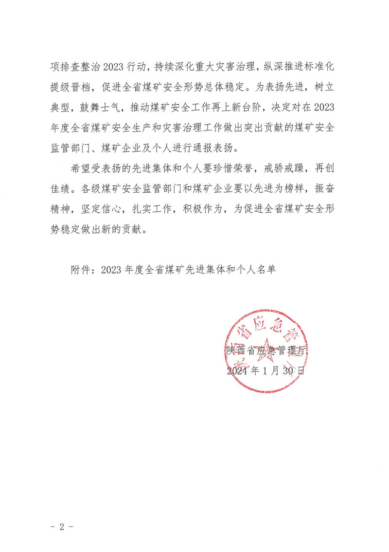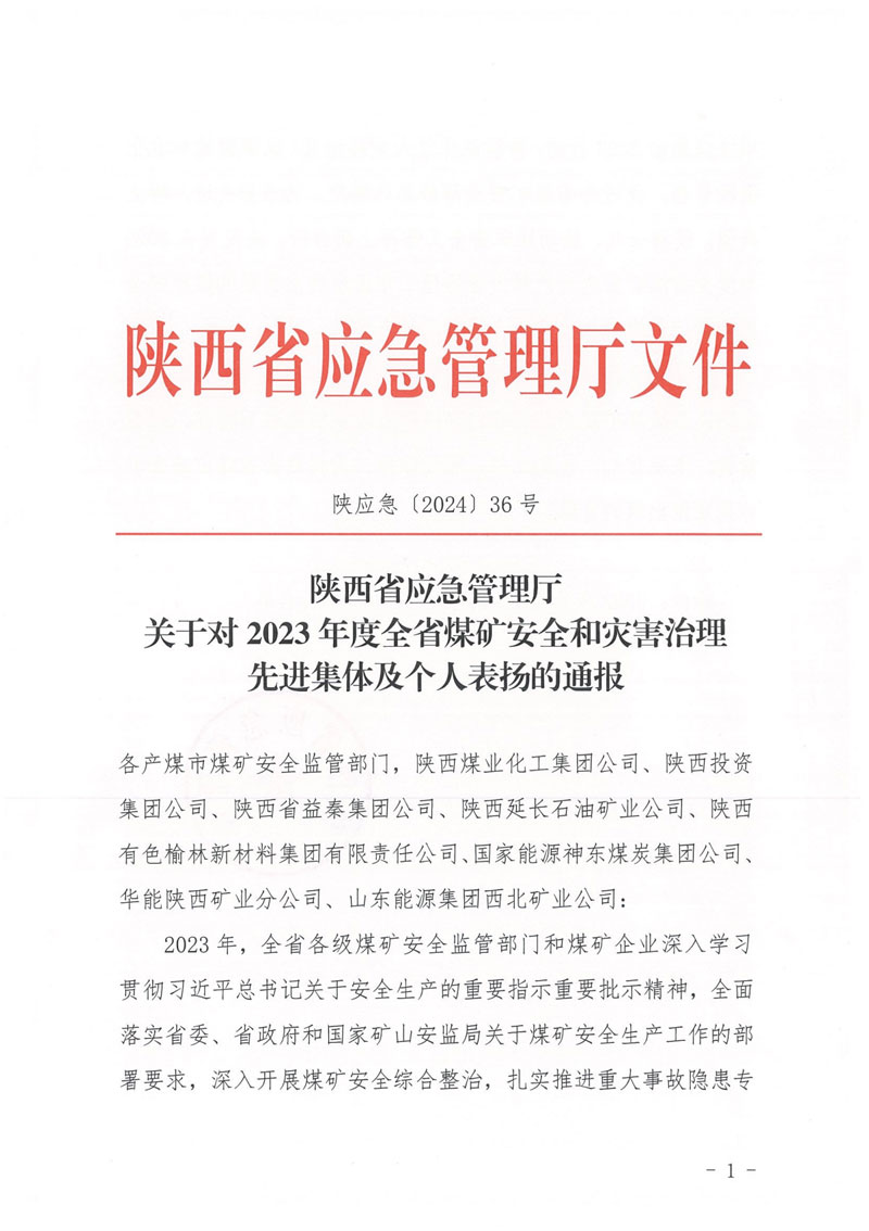 匯能集團(tuán)錕源礦業(yè)有限公司 榮獲“陜西省煤礦安全先進(jìn)集體”稱號(hào)